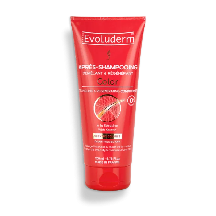 Description: Sans silicone et spécialement formulé pour les cheveux fragilisés par les couleurs successives, l’Après-Shampoing Démêlant & Régénérant Color est enrichi en Kératine pour offrir un soin efficace instantané à la chevelure. La Kératine agit comme un voile protecteur qui renforce la fibre capillaire, répare les zones fragilisées et ravive la couleur. Une texture fondante et un parfum délicatement fruité pour un véritable moment de plaisir. Résultat : Parfaitement démêlée, votre chevelure est renforcée et retrouve une couleur éclatante comme au premier jour.