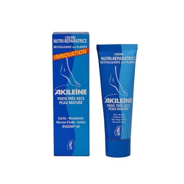 Description: La Crème Nutri-Réparatrice AKILEÏNE nourrit dès 7 jours et répare dès 14 jours les pieds secs et abîmés.