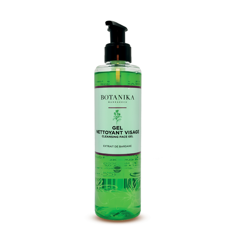 Le gel nettoyant visage de la gamme Botanika Marrakech à base d’extraits de feuilles d’arganier et de bardane élimine en douceur les impuretés tout en respectant l’équilibre naturel de la peau.